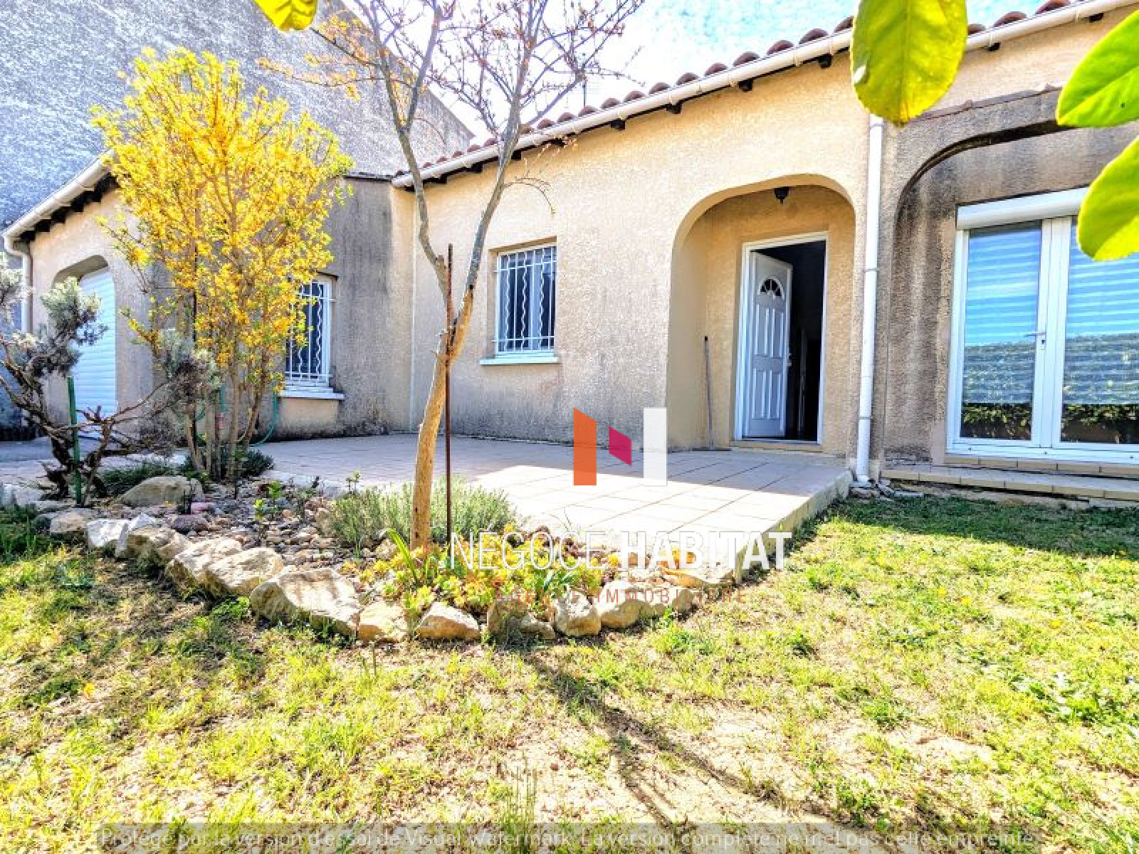 A Vergèze. Je vous propose cette maison plain pied, Etat impeccable, fonctionnelle, bien agencée et au calme. Idéalement située dans un quartier résidentiel, aucune nuisance. Un terrain entièrement cloturé de 366 m², elle est mitoyenne par le garage.