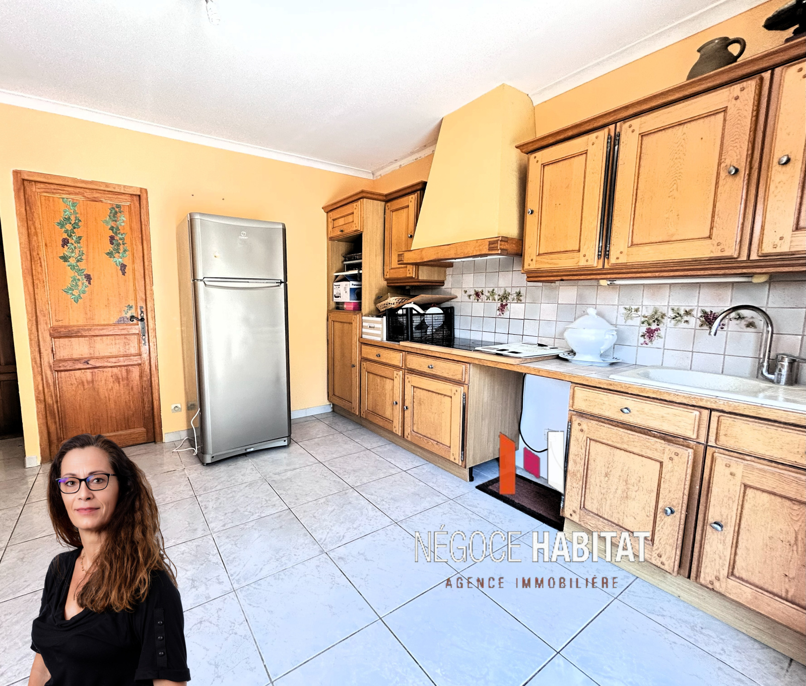 A l'étage , nous retrouvons une autre cuisine ( + coin cellier ) donnant sur la terrasse de 50 m² avec une superbe vue , un salon/ salle à manger très lumineuse de 34m² , une chambre , une salle de bains ,un wc et une buanderie