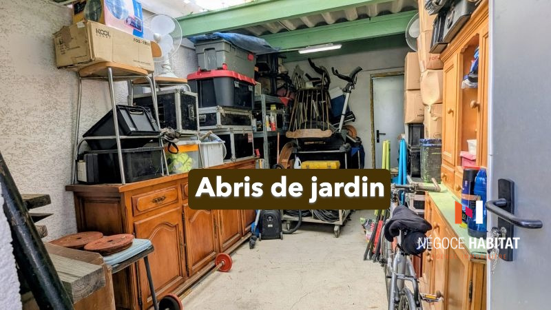 Un abri de jardin en dur, fermé et sécurisé, complète les équipements extérieurs.