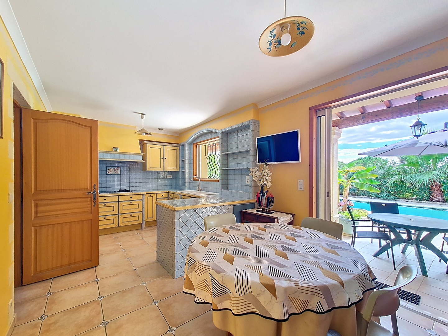 SOMMIERES / L' Agene Négoce Habitat vous propose en exclusivité cette belle villa provencale T5 en R+1 de 170m² habitable des années 2000. Elle se compose au rdc d'une entrée qui dessert une grande pièce de vie baignée de lumière de 68m² avec haut plafond et poutre apparente, d'une cuisine équipée de 17m² ayant un accès direct sur la terrasse, 3 chambres équipée de placard, une salle d'eau et un WC. A l' étage une suite parentale avec salle de bain et dressing de 25m². Chauffage au sol avec pompe à chaleur récente, panneaux solaires 4.5KW en auto consommation intallés en 2023. Système de Vidéo surveillance.avec 8 caméras . Double garage de 50m². Coté extérieur, terrain clos et arborés de 2040m² environ avec terrasse, piscine 10x5 diffazur et pool house et forage. Situé à proximité des commerces, lycée et toutes commoditées. A VOIR !! Réf FA 3833 Tarif : 570 000€ soit 550 000€ hors honoraires + 20 000€ ttc de frais d'agence charge acquéreurs soit 5% du tarif de vente. Tél : 04 99 77 11 25 Port : 06 14 91 07 60 www.negoce-habitat.com