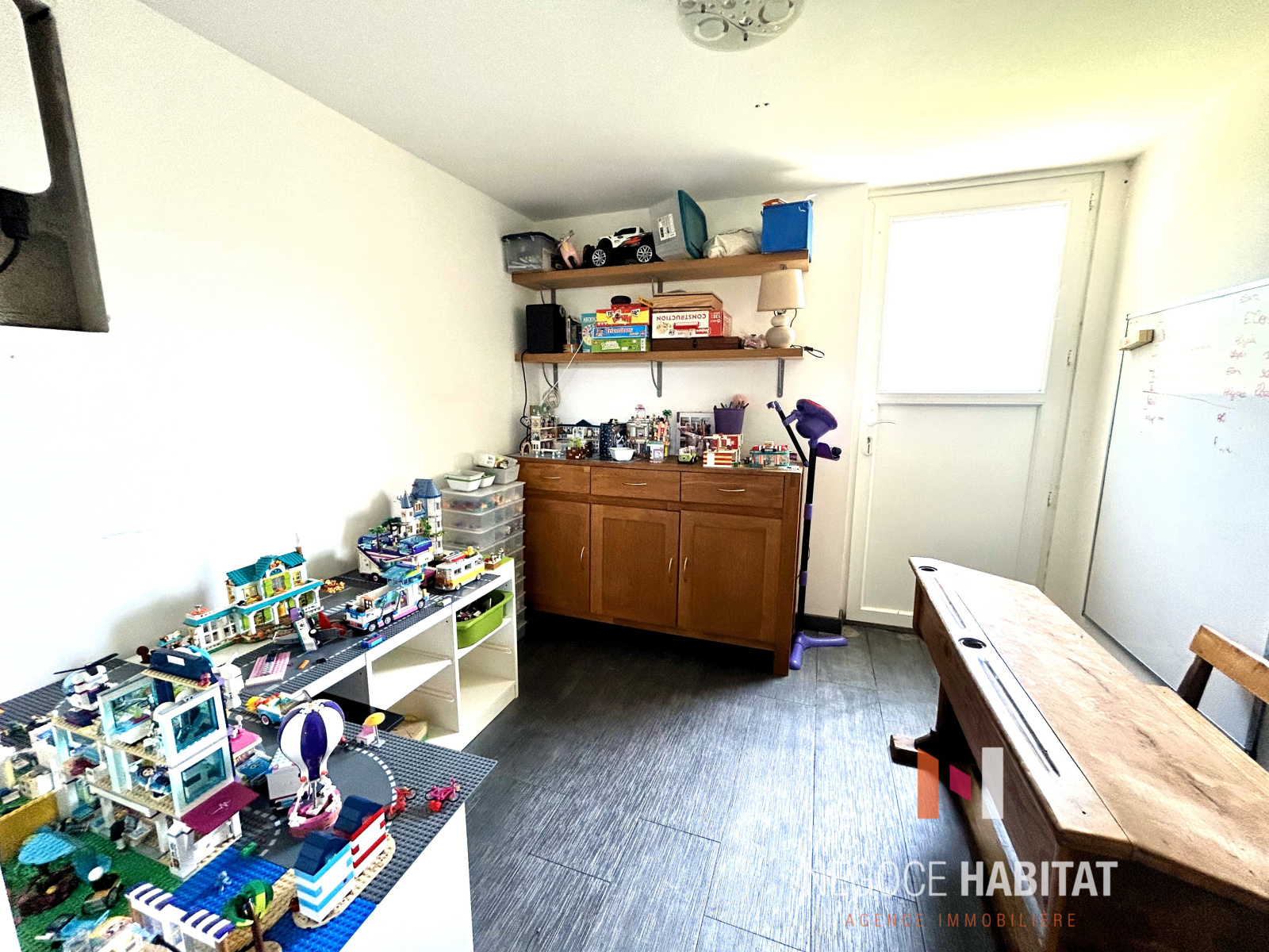 L'ancien garage de 15 m² a été aménagé en cellier/buanderie et salle de jeu /bureau