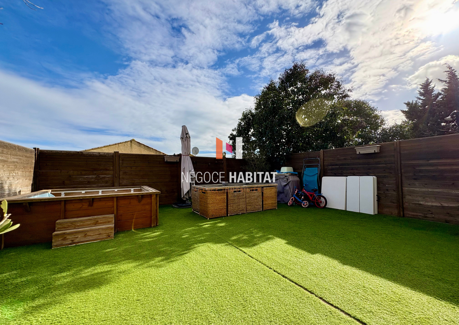 POUSSAN 34560 : Villa / duplex T5 de 87 m² entièrement climatisée avec garage attenant et parking. Une pièce de vie conviviale avec cuisine US, 4 chambres dont une au rez-de-chaussée pouvant s'ouvrir sur le séjour, une salle d'eau moderne, une salle de bain fonctionnelle et 2 WC. A l'extérieur : 50 m² de jardin / terrasse bien exposé avec piscine pour les beaux jours. Fonctionnelle, lumineuse et efficace. Nombre de lots de copropriété : 12. Pas de procédures en cours. Ce bien est vendu libre d'occupation. Quote part annuelle des charges : 1310 €. Réf : AB3932. PRIX DE VENTE : 353 000 euros, honoraires charge vendeur. On visite ? Contactez Anthony BALLESTER au 06 10 33 89 90 (Agent commercial immatriculé au RSAC de Montpellier n°83491943300021) ou l'agence NEGOCE HABITAT au 04 99 77 11 25 (117 Av du Mas de Sapte 34130 Saint-Aunèss. Carte professionnelle CPI 3402 2017 000 017 628 délivrée par la CCI de l'Hérault. Sarl AFCR au capital de 5000 €. Non détention de fonds). Les informations sur les risques auxquels ce bien est exposé sont disponibles sur www.georisques.gouv.fr