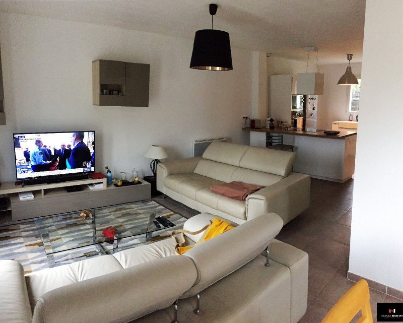 LUNEL 34400: Villa T5 de 110 m2 composée au rez-de-chausée, d'une entrée ouverte sur une vaste pièce à vivre de 40 m2 orientée sud-est, avec cuisine américaine toute équipée, un cellier, un bureau, un WC indépendant et un garage. A l'étage, trois chambres dont une suite parentale de 18 m2 avec dressing et salle de bain, une salle d'eau moderne et un second WC. Implantée sur une parcelle de 312 m2, dans un environnement calme, à proximité des commodités. Ref: 2245. Prix de vente: 244000€ HAI à la charge du vendeur. Contact: BALLESTER Anthony 06 10 33 89 90 (Agent commercial immatriculé au RSAC de Montpellier sous le numéro 834 919 433) NEGOCE HABITAT 04 99 77 11 25 www.negoce-habitat.com