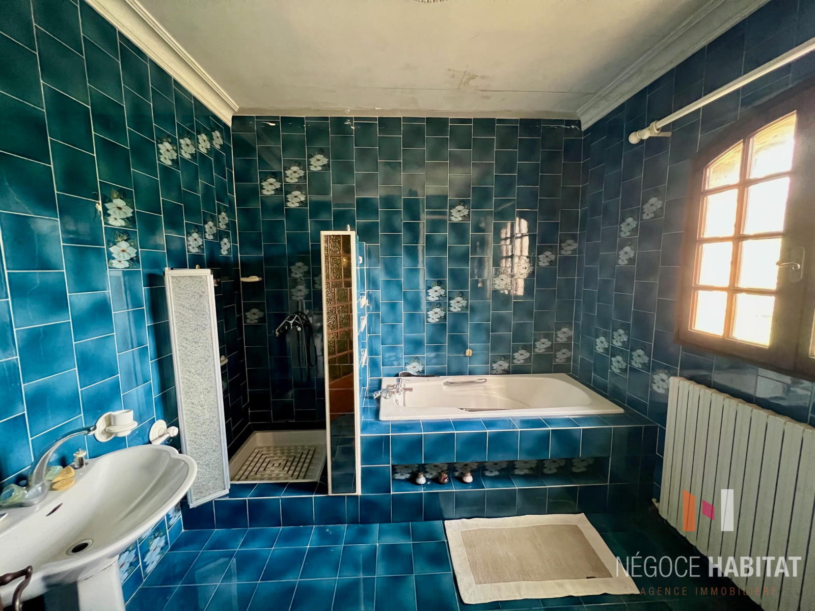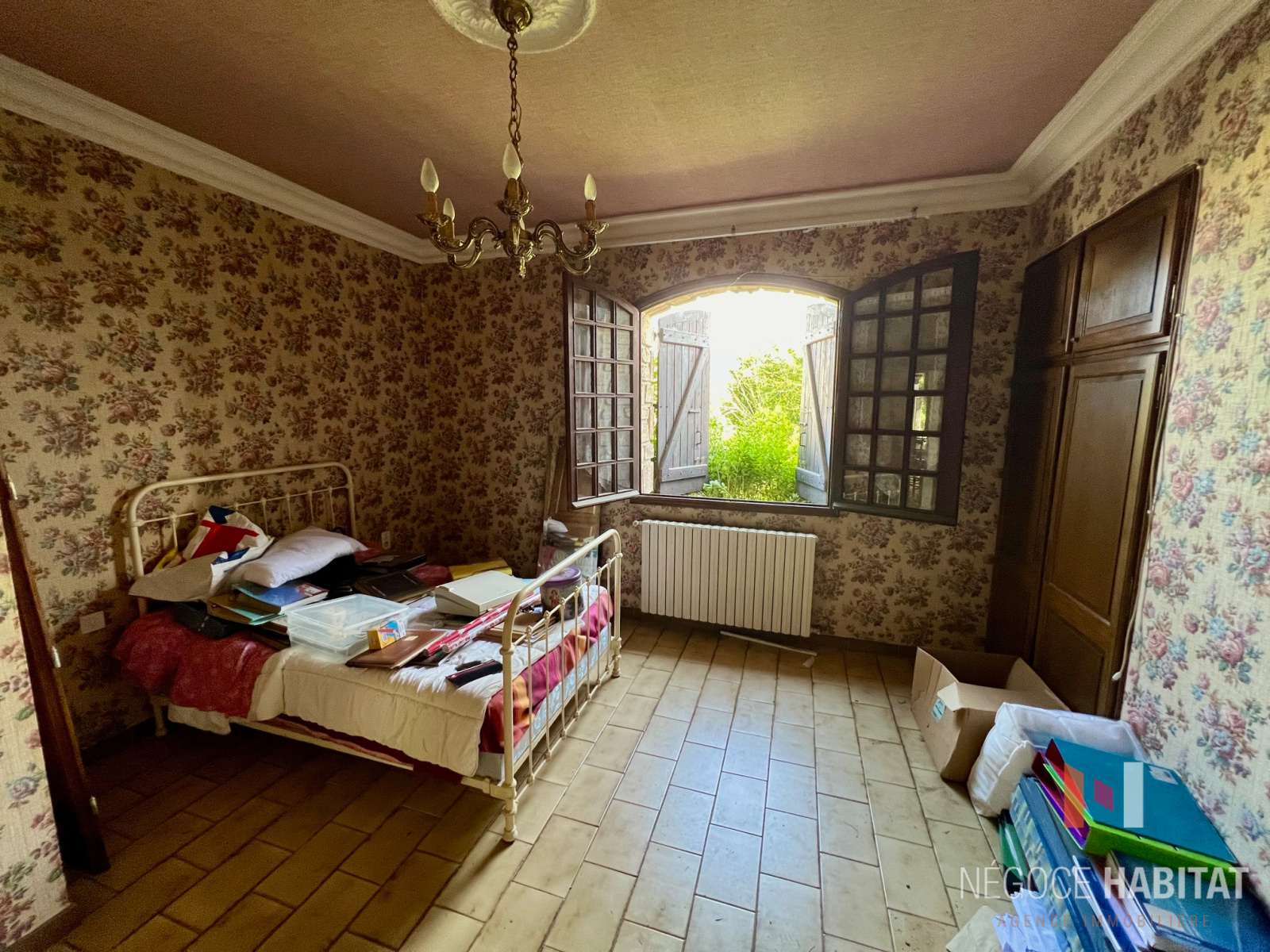 Cette maison des années 1980 dispose au rez-de-chaussée d'un grand hall d'entrée desservant un salon/séjour de 44m² lumineux avec cheminée, une cuisine indépendante spacieuse , une buanderie très pratique et une grande cave qui séduira les amateurs de vins.