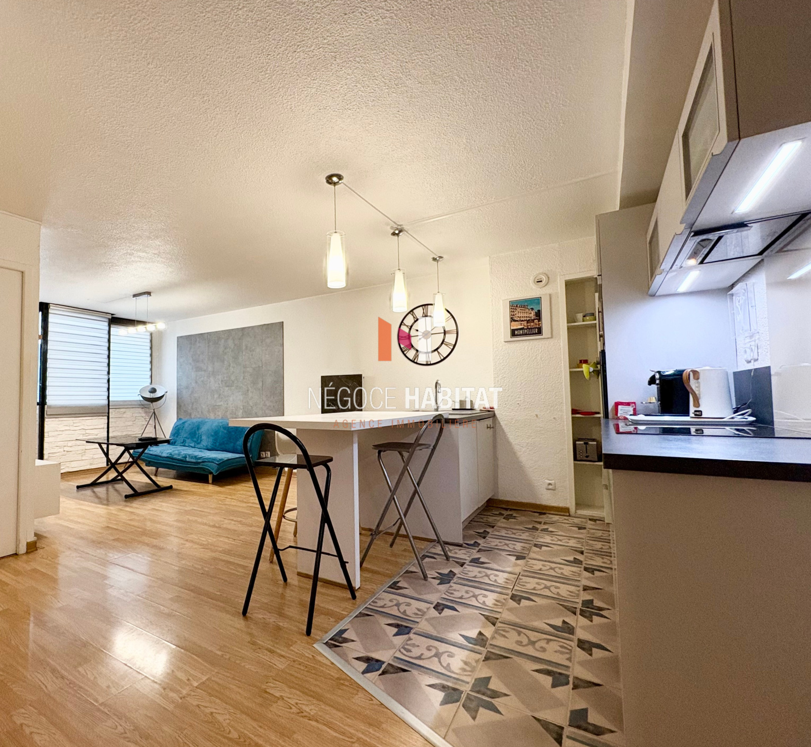 MONTPELLIER 34000 : Centre ville, à 2 pas de la place de la comédie et de la gare Saint-Roch. Au 2e étage avec ascenseur d'une résidence sécurisée, découvrez ce T2 de 50.34 m². L'entrée distribue une pièce de vie agréable avec cuisine américaine, une chambre confortable, une salle de bain fonctionnelle et WC indépendant. Un appartement bien pensé, parfait pour un premier achat ou un investissement malin. Nombre de lots de copropriété : 54. Pas de procédures en cours. Ce bien est vendu libre d'occupation. Quote part annuelle des charges : 1200 €. Réf : AB3908. PRIX DE VENTE : 190 000 euros, honoraires charge vendeur. On visite ? Contactez Anthony BALLESTER au 06 10 33 89 90 (Agent commercial immatriculé au RSAC de Montpellier n°83491943300021) ou l'agence Négoce habitat au 04 99 77 11 25 (117 av du Mas de Sapte 34130 Saint-Aunès. Carte professionnelle CPI 3402 2017 000 017 628 délivrée par la CCI de l'Hérault . SARL A.F.C.R au capital de 5000 €. Non détention de fonds). www.negoce-habitat.com Les informations sur les risques auxquels ce bien est exposé sont disponibles sur :www.georisques.gouv.fr