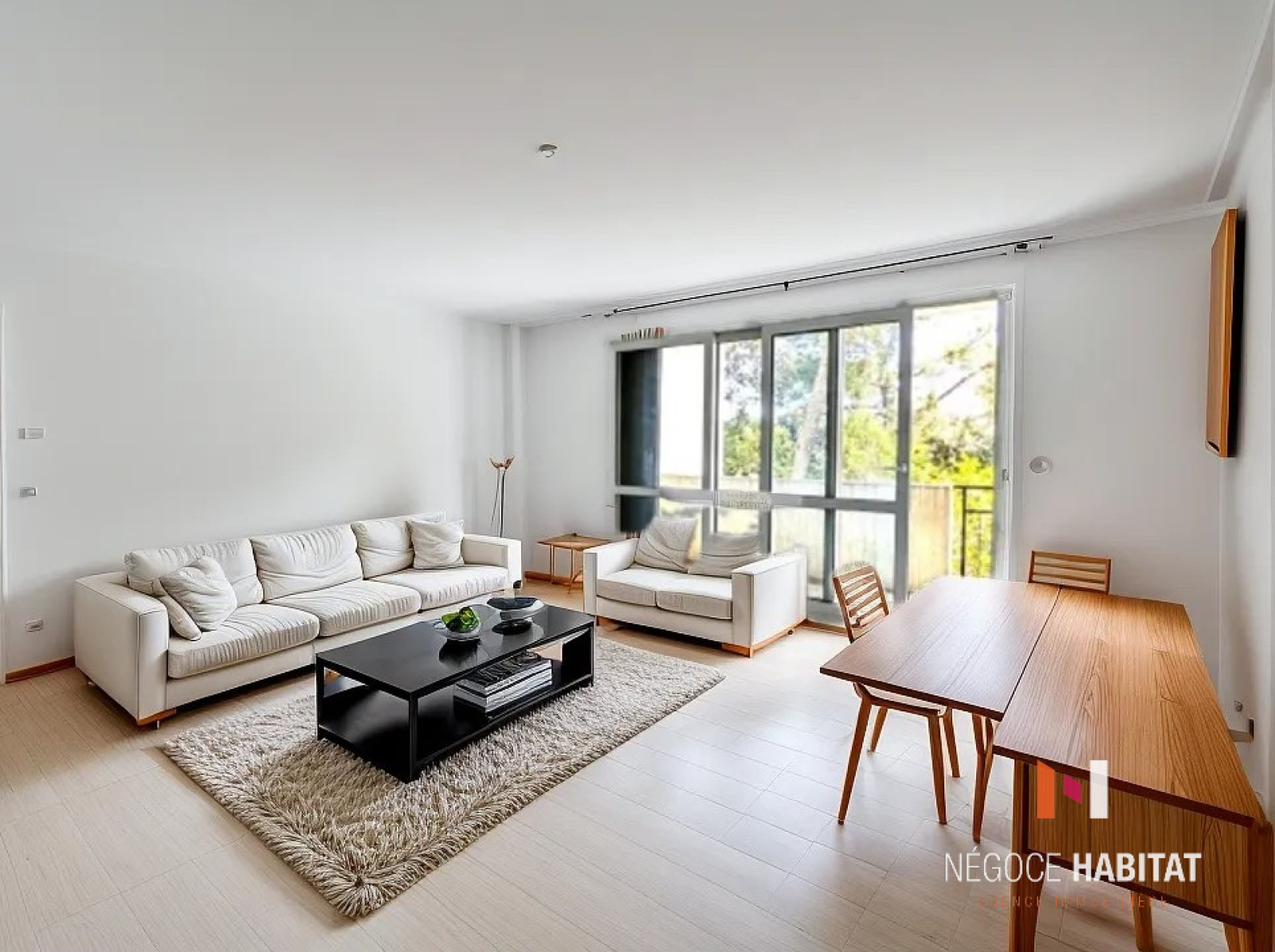 Opportunité à saisir ! L'Agence Négoce Habitat vous propose cet appartement T3 de 71.13 m², dans une résidence sécurisée et agréable de 1991. Il se trouve au premier étage sur 5 et il est accessible par l'ascenseur. Il dispose d'une grande entrée avec placard menant à un salon lumineux avec terrasse de 9 m² (expo Sud) et une cuisine séparée avec balcon. Ces deux espaces peuvent être facilement réaménagés en une seule grande pièce de vie traversante. L'appartement comprend également une salle de bain, un WC séparé et deux chambres de 14 et 10 m².