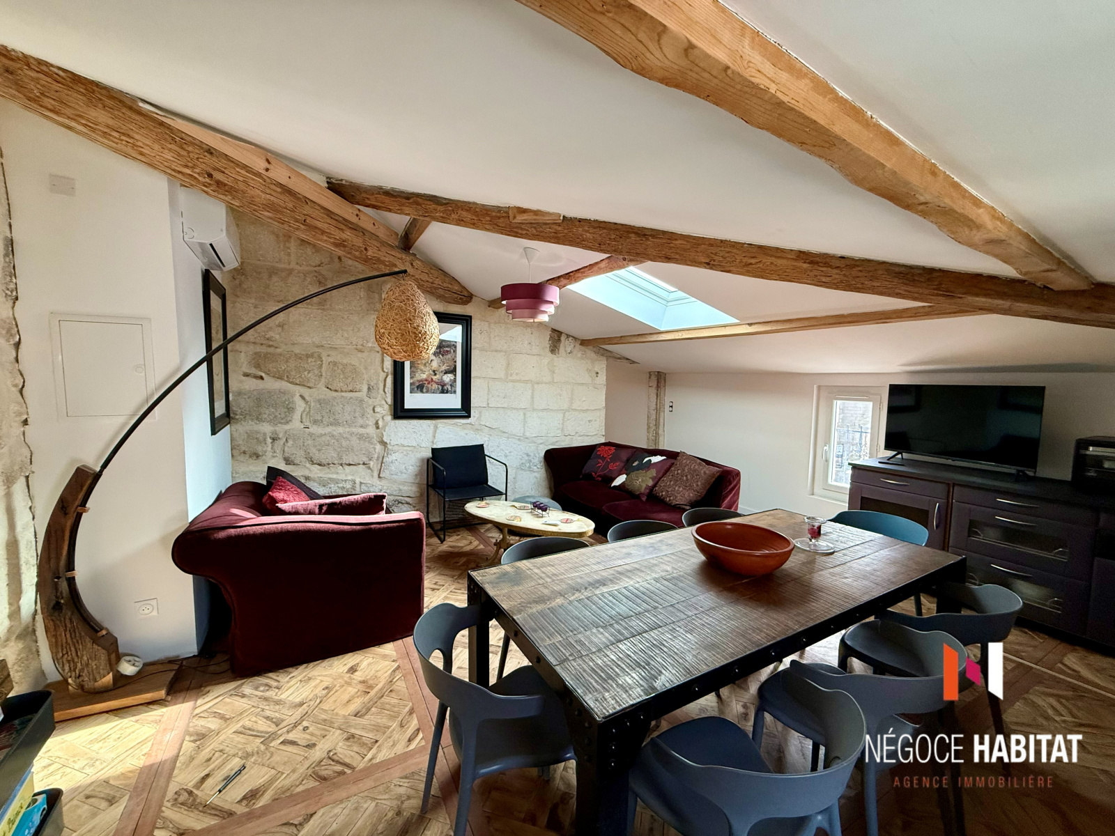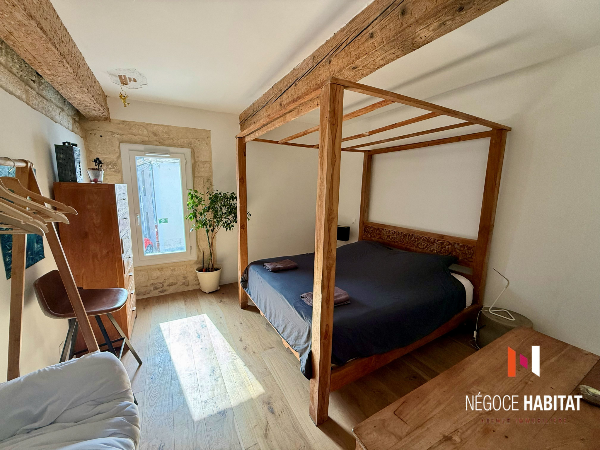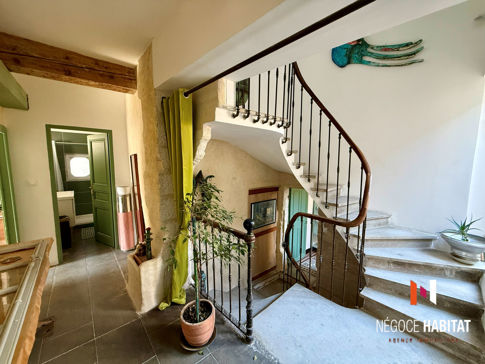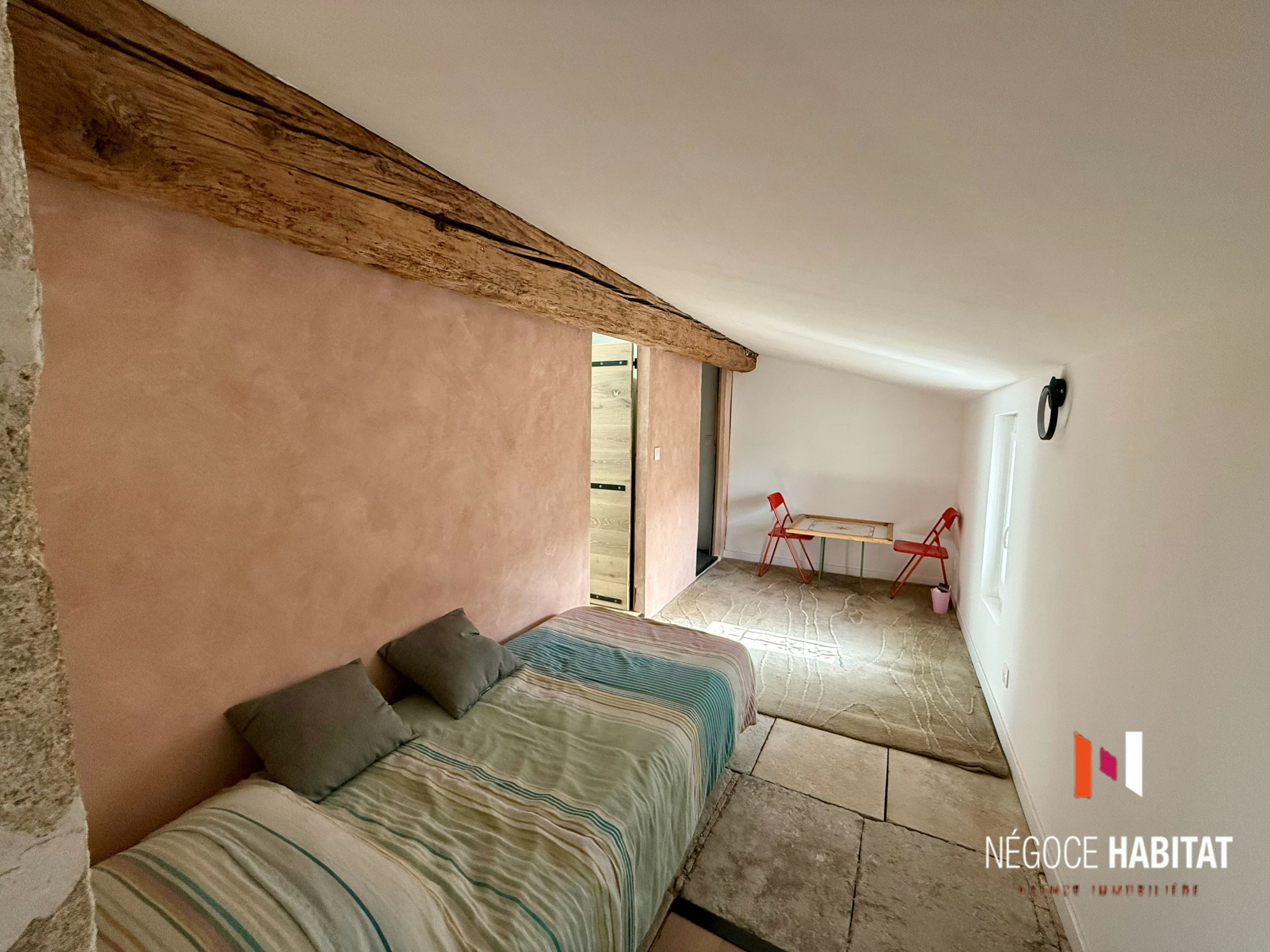 pierres apparentes, poutres, parquets massifs en chêne et olivier, tout en offrant un confort moderne :