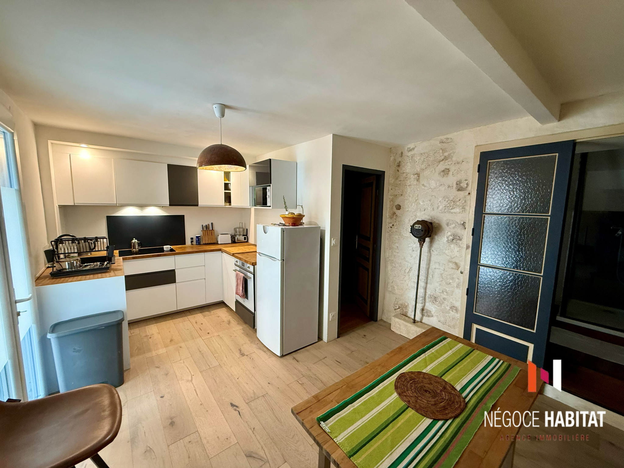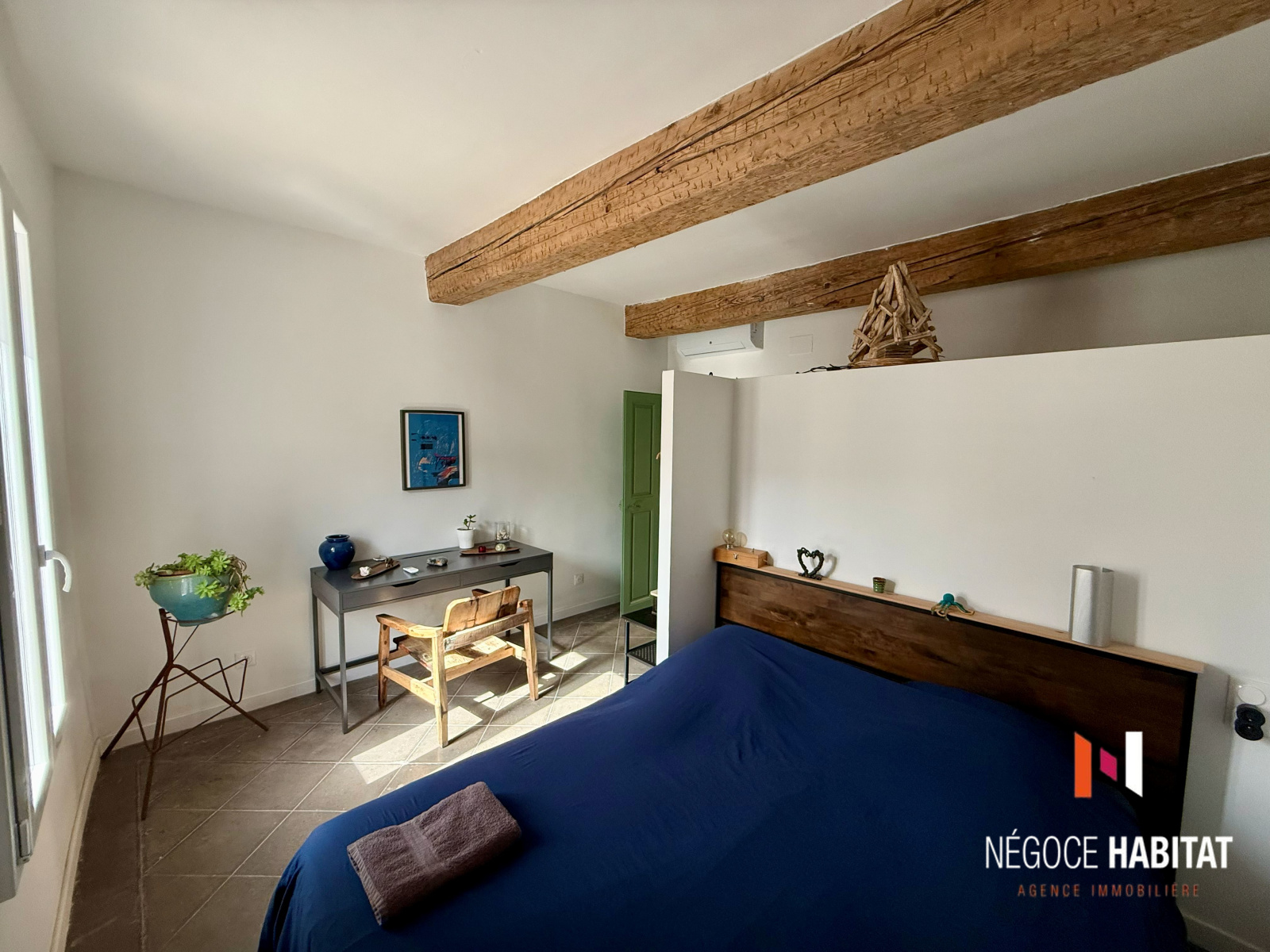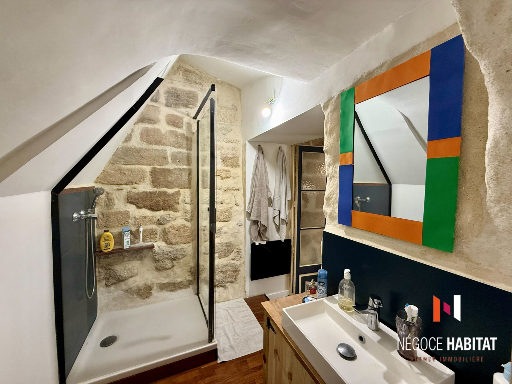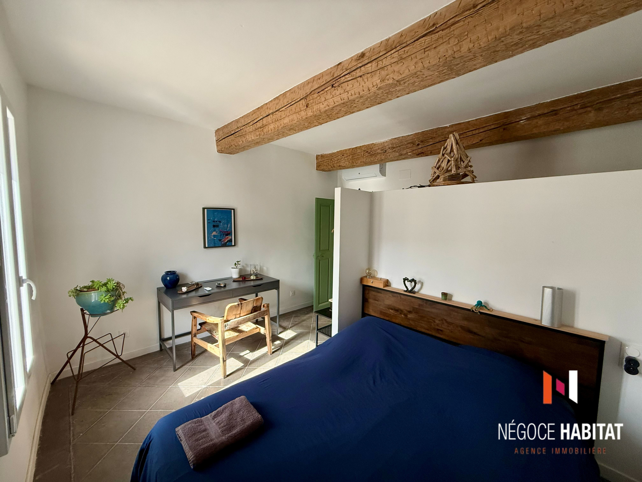 pierres apparentes, poutres, parquets massifs en chêne et olivier, tout en offrant un confort moderne :