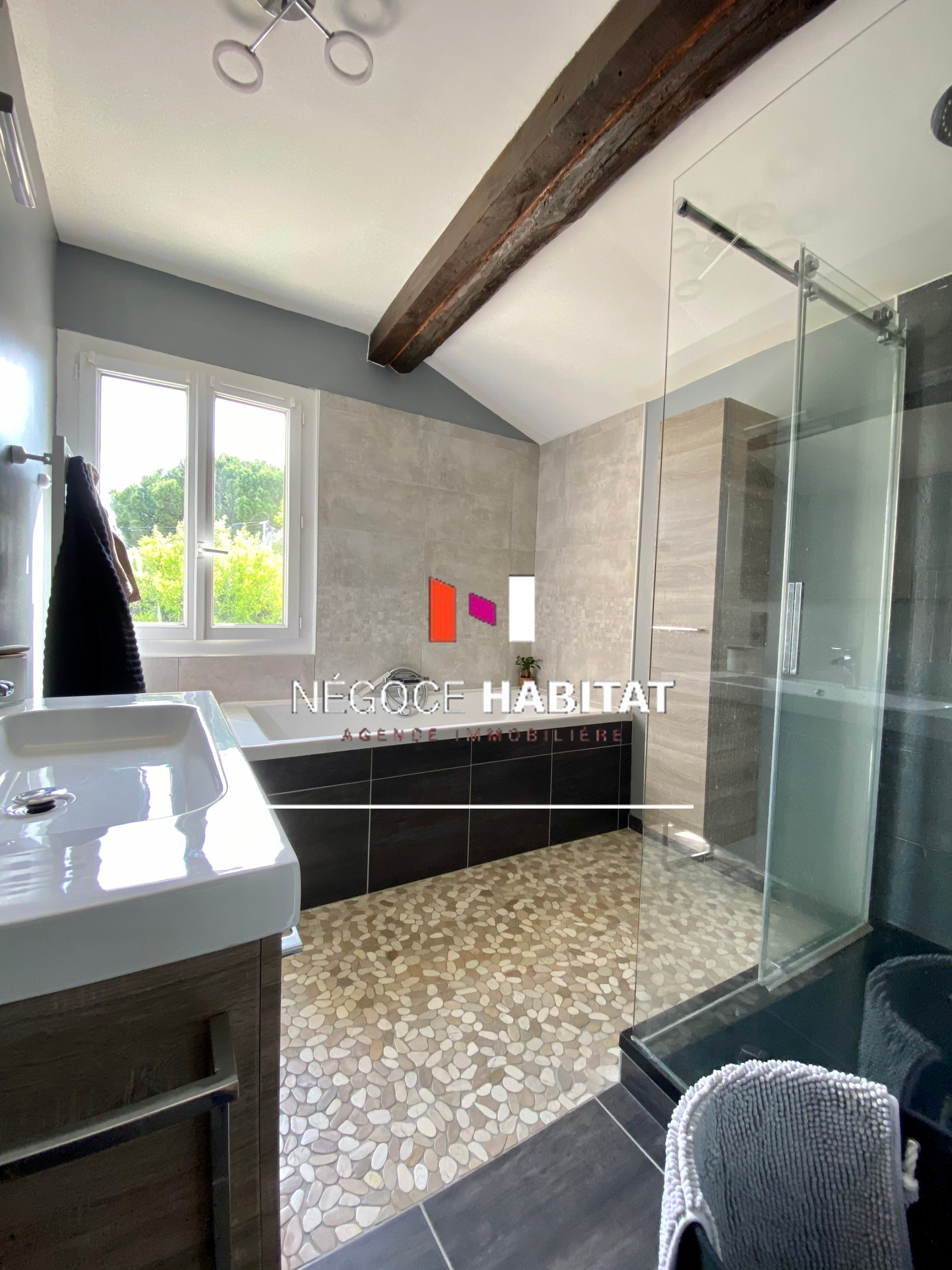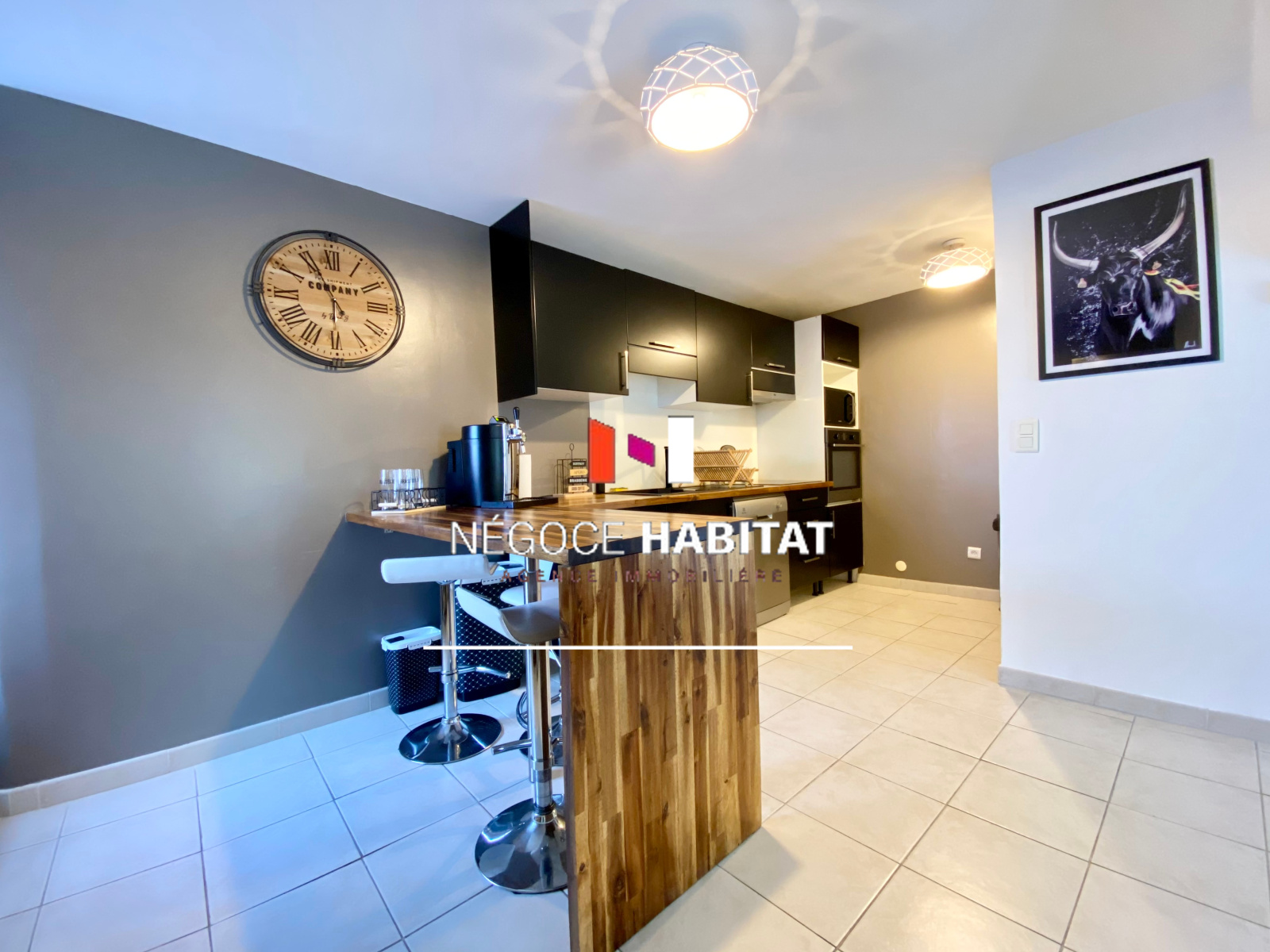 LUNEL-VIEL 34400 : L'agence Négoce habitat vous présente à la vente cette charmante maison de type T3 d'environ 90 m² avec garage. L'espace intérieur se compose au rez-de-chaussée d'une entrée menant à la pièce de vie climatisée de 40 m² avec cuisine US entièrement équipée, un WC indépendant ainsi qu'une buanderie et un garage de 17 m² avec portail motorisé. A l'étage, l'espace nuit comprend 2 chambres spacieuses dont une avec mezzanine, une salle de bain moderne avec douche italienne et baignoire ainsi qu'un second WC indépendant. Aucuns travaux ne sont à prévoir ( menuiserie pvc, volets roulants électriques, adoucisseur d’eau...). La maison située au centre du village offre le calme et la proximité aux commodités. Réf : AB2899. PRIX DE VENTE : 220 000 € honoraires charge vendeur. Pour visiter, contactez Anthony BALLESTER 06 10 33 89 90 (Agent commercial immatriculé au RSAC de Montpellier n°834919433) NEGOCE HABITAT 04 99 77 11 25 www.negoce-habitat.com