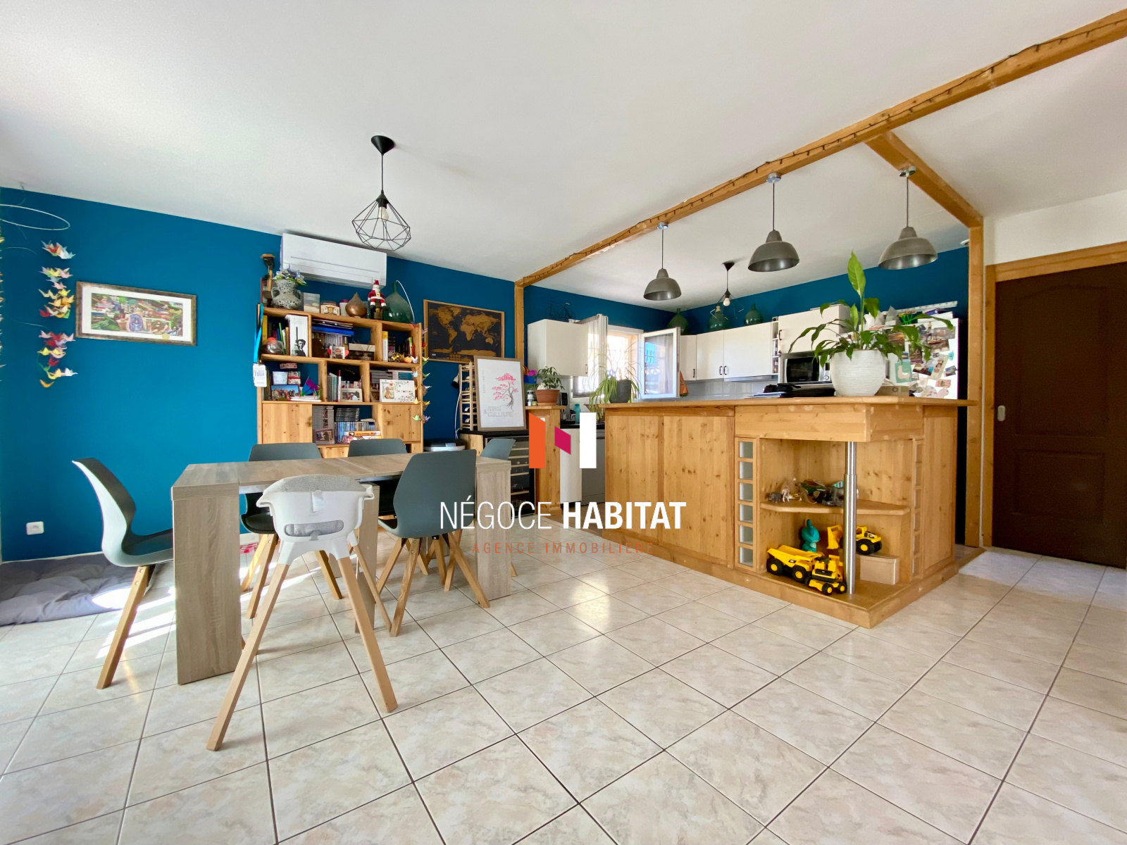 LUNEL-VIEL 34400: L'agence Négoce habitat vous présente à la vente cette coquette villa non mitoyenne de type T4 d'environ 81 m² intégralement de plain-pied avec garage attenant. A l'intérieur, elle se compose d'une entrée avec placard ouverte sur une agréable pièce de vie climatisée de 40 m² avec cuisine entièrement équipée, 2 belles chambres avec placards aménagés, une salle de bain avec baignoire et douche italienne, une grande buanderie et un WC indépendant. La maison est implantée sur une parcelle piscinable de 400 m² avec terrasse aménagée, boulodrome et espace potager. Elle se situe dans un environnement calme et résidentiel à proximité des commodités du village. Ref: AB3447. PRIX DE VENTE : 335 000 euros, honoraires charge vendeur. Pour organiser une visite, contactez votre conseillez Anthony BALLESTER au 06 10 33 89 90 (Agent commercial immatriculé au RSAC de Montpellier n°834 919 433) ou l'agence NEGOCE HABITAT au 04 99 77 11 25 www.negoce-habitat.com. Les informations sur les risques auxquels ce bien est exposé sont disponibles sur le site Géorisques : www.georisques.gouv.fr
