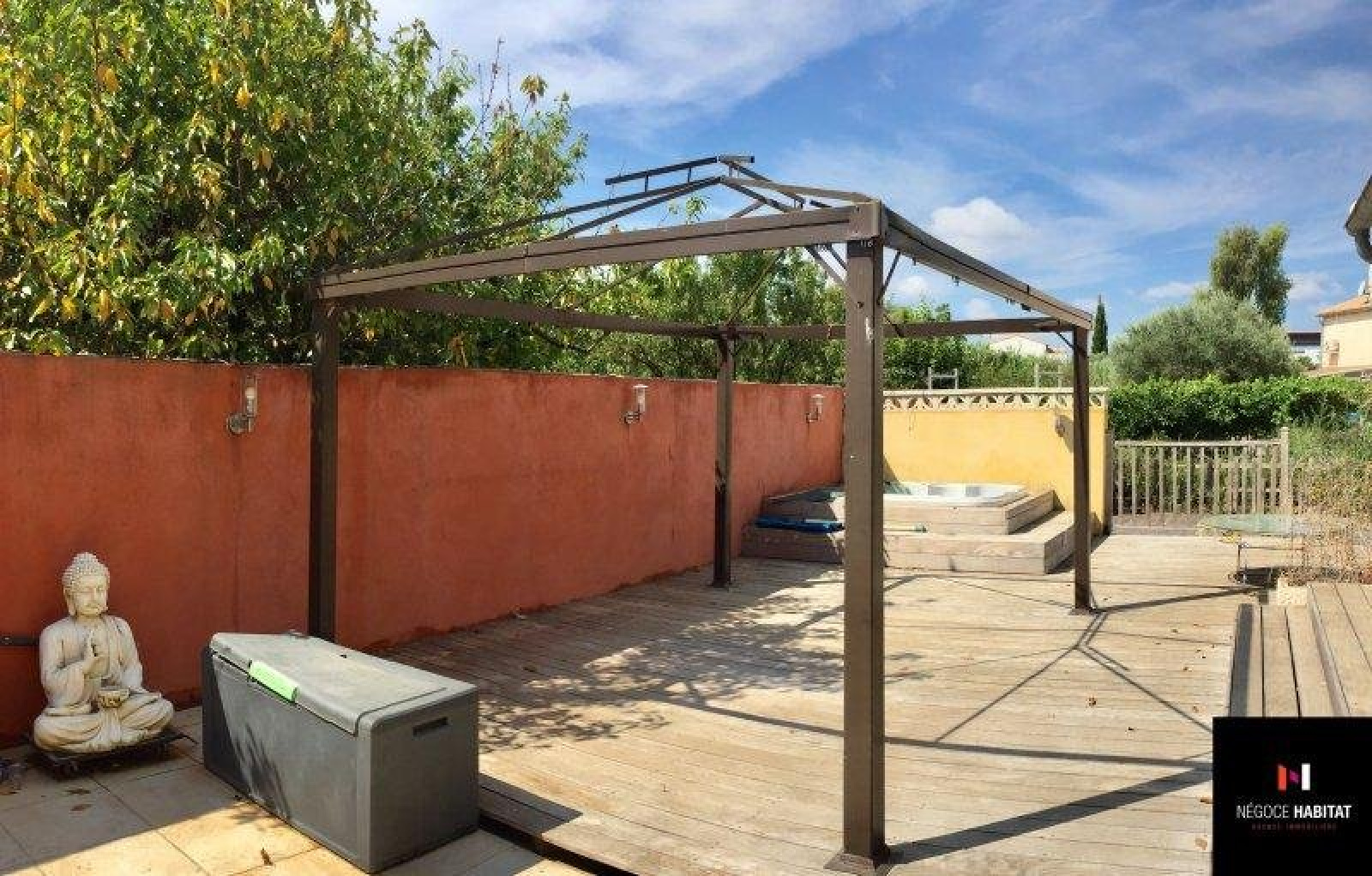 LUNEL-VIEL 34400: Maison T7 de 150 m² entièrement climatisée, composée au rez-de-chaussée d'une entrée desservant une vaste pièce à vivre de 35 m² avec cheminée, une cuisine indépendante toute équipée, une véranda de 20 m² orienté plein sud, une chambre spacieuse avec placard aménagé, un WC et un garage. A l'étage, 4 chambres avec placard et balcon, une salle de bain avec un second WC et une salle d'eau. Implantée sur une agréable parcelle de 510 m² avec terrasse aménagée et jacuzzi, barbecue, arrosage automatique, forage et espace potager. Dans un environnement calme et résidentiel, au centre du village. Travaux de rafraichissement à prévoir. Ref: AB2295. Prix de vente: 260000€ HAI à la charge du vendeur. Contact: Anthony BALLESTER 06.10.33.89.90 (Agent commercial immatriculé au RSAC de Montpellier n°834919433) NEGOCE HABITAT 04.99.77.11.25 www.negoce-habitat.com