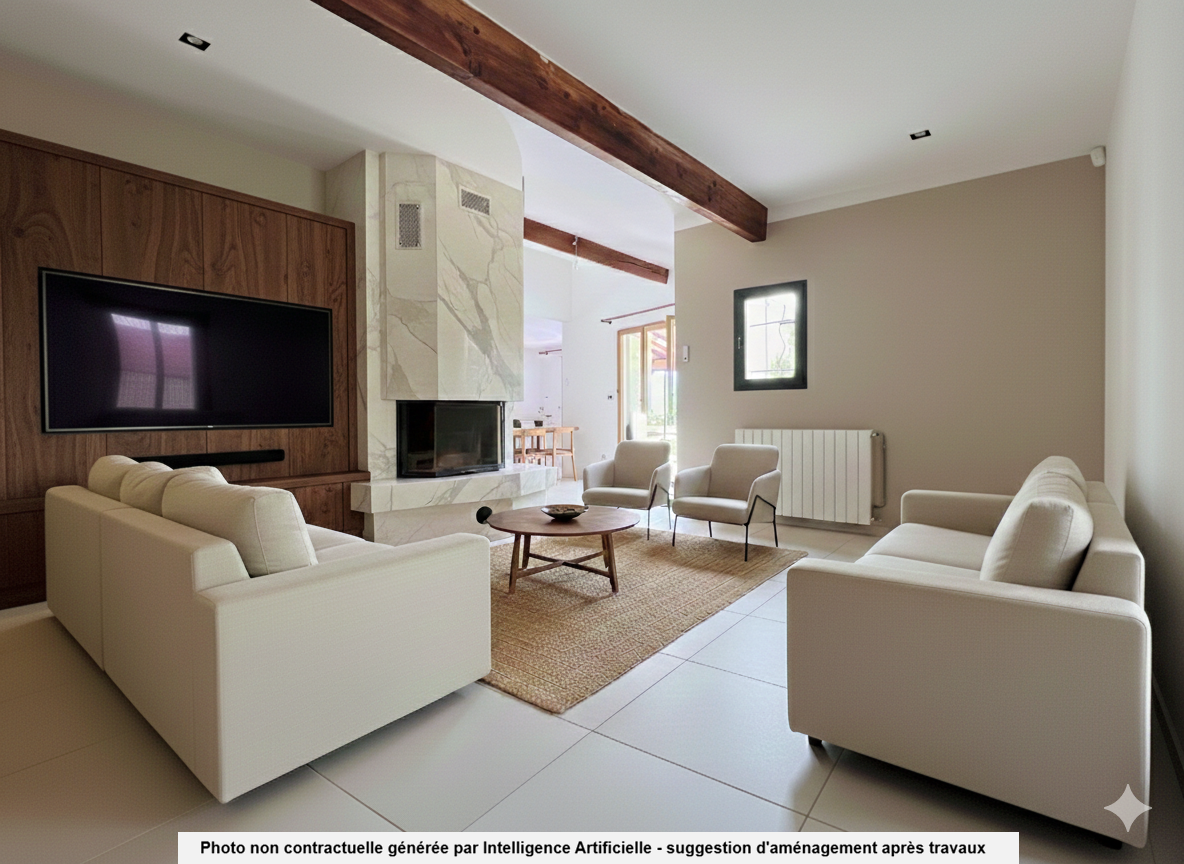 Nous vous avons fait une proposition de visuels "avant/après" rénovation avec une suggestion de travaux et aménagements générés par un logiciel d'intelligence artificielle. Les travaux et aménagements suggérés sont donnés à titre indicatif et ne sont pas inclus dans le prix de vente.
